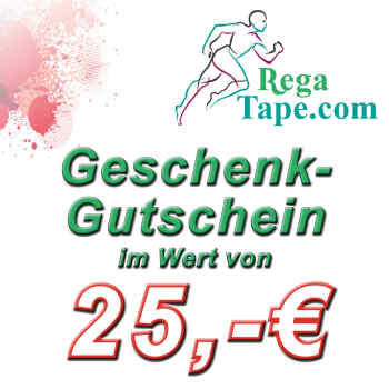 Der 25,-€ Geschenkgutschein wird durch das Verschenken an einen Anwender der Zugang zum RegaTape Online-Shop. Sie verschenken mit diesem 25,-€ Gutschein die Möglichkeit einem Menschen aus Ihrer Familie, dem Freundes- oder Bekanntenkreis etwas gutes zu tun. Dieser 25,-€ Geschenkgutschein hat eine Gültigkeit von 3 Jahren, was Sie und Ihren Beschenkten ausreichend Zeit der Geltendmachung verschafft. Mit diesem Gutschein sichern Sie auch Ihre Kaufkraft für Produkte von RegaTape ab, da dieser Gutschein seinen Wert beständig erhält.